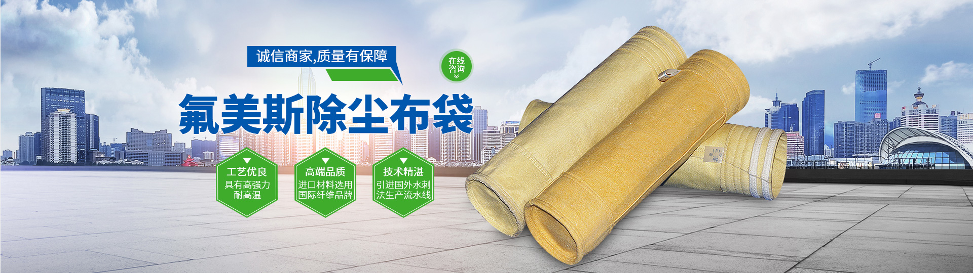 公司配制國內外各種原料比例混紡,適應各類企業專用。可生產出涂層、覆膜、縫制、納米過濾布袋等產品,并且在排灰量檢測方面合格。各種中、類型布袋,適合在不同工礦企業所用;適用于水泥、鋼鐵、化工、鐵合金、發電、垃圾焚燒、陶瓷等企業